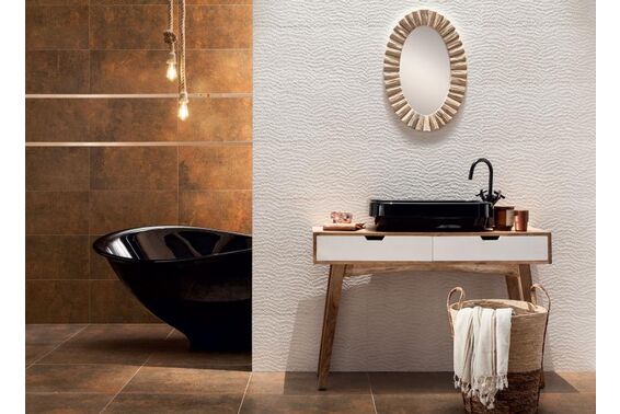 Podążając za trendami wnętrzarskimi, Tubądzin Terraform doskonale wpisuje się w aranżacje w stylu loftowym oraz wabi-sabi. Ich surowy wygląd i naturalne barwy doskonale komponują się z betonem, drewnem i miedzianymi listwami czy metalowymi elementami, tworząc wyjątkowe i nowoczesne wnętrza.