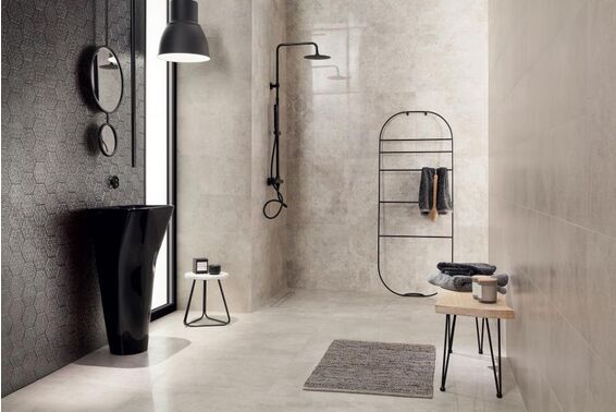 Dzięki rektyfikowanym płytkom ściennym z kolekcji Tubądzin Terraform można uzyskać precyzyjne i estetyczne połączenia między poszczególnymi elementami. Ich dokładnie obcięte krawędzie umożliwiają układanie płytek w sposób płynny i równy, co daje efekt harmonijnej powierzchni.