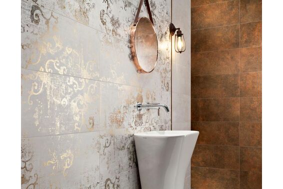 Tubądzin Terraform Caramel i Terraform Grey - Rdzawe lub szare płytki ścienne z efektem przecieranego tynku i grafiki